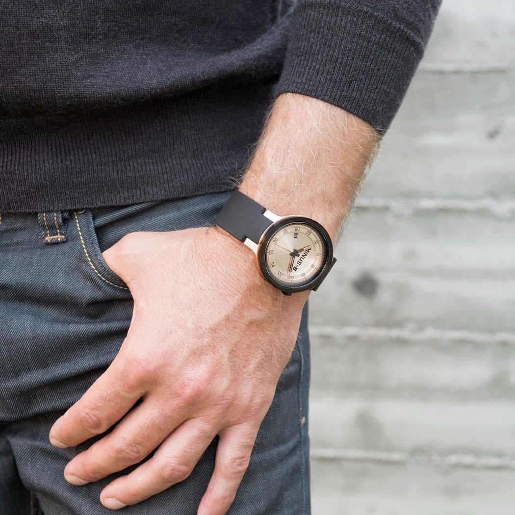 Stacked stainless steel rings are individually PVD-coated to create the stepped gradient visual. PVD coating (Physical Vapor Deposition) introduces reactive gas and metal vapors which form a compound that is deposited on the material as a thin, highly adherent coating.
